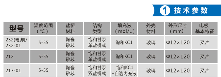 232/232-01、222、212:廣泛使用的**典型參比電極,性能穩(wěn)定可靠。高溫(超過70℃)時性能變差。電極中含有汞成分,不應(yīng)隨意丟棄。