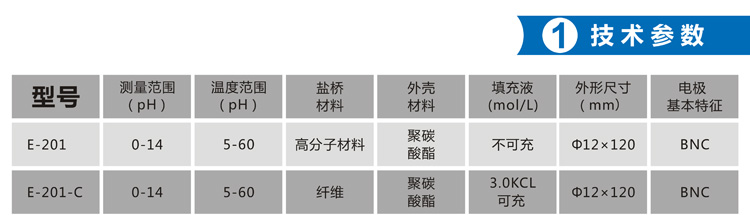 常規(guī)pH復(fù)合電極技術(shù)參數(shù)