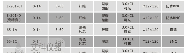 E-201-Z:取樣量多(≧10mL),用于半固體樣品測量,可刺入樣品內(nèi)部進(jìn)行pH值測量,如豬肉、土壤等。
